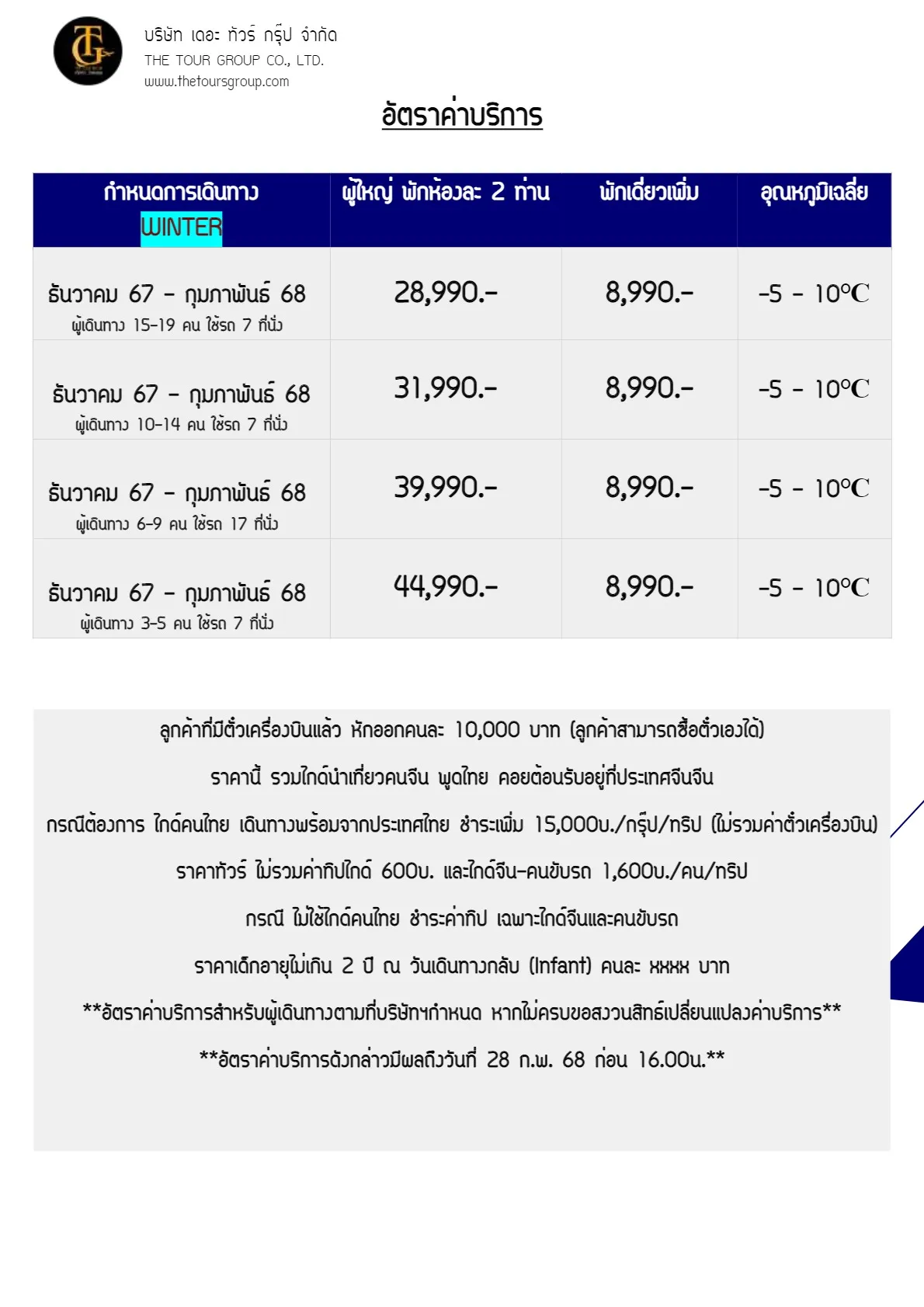 TGCSX-09FD จางเจียเจี้ย ฟูหรงเจิ้น เฟิ่งหวง ฉางซา Winter 6D 5N DEC 24 – FEB 25