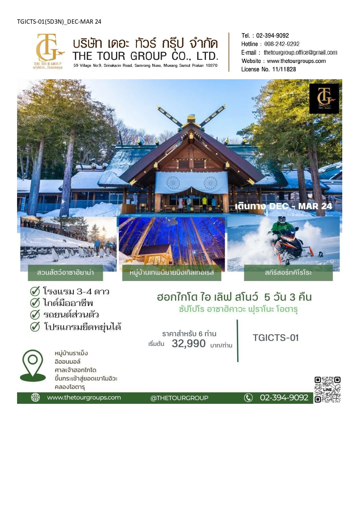 TGICTS-01 ฮอกไกโด ไอเลิฟ สโนว์ – 5D3N เดินทาง DEC – MAR