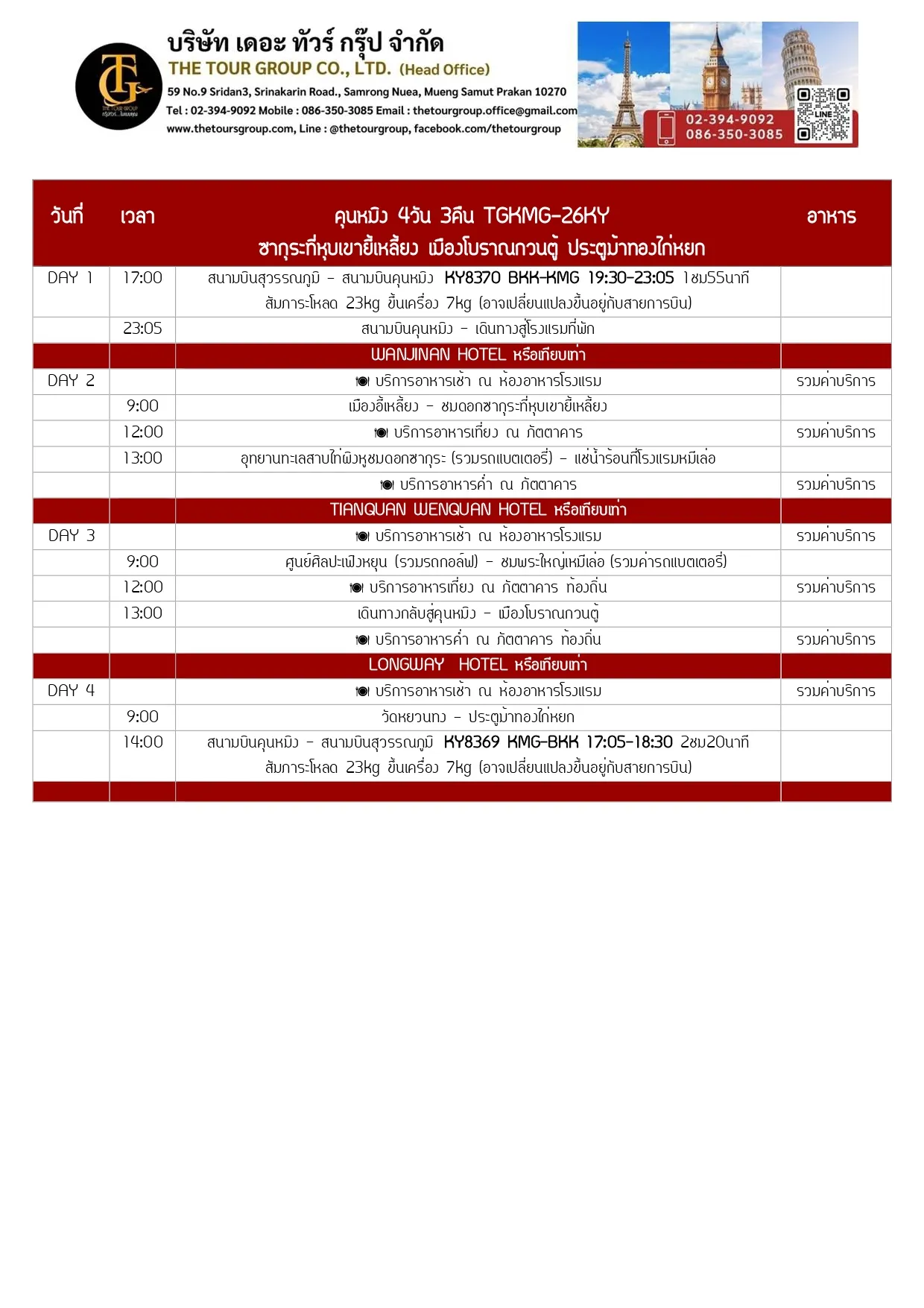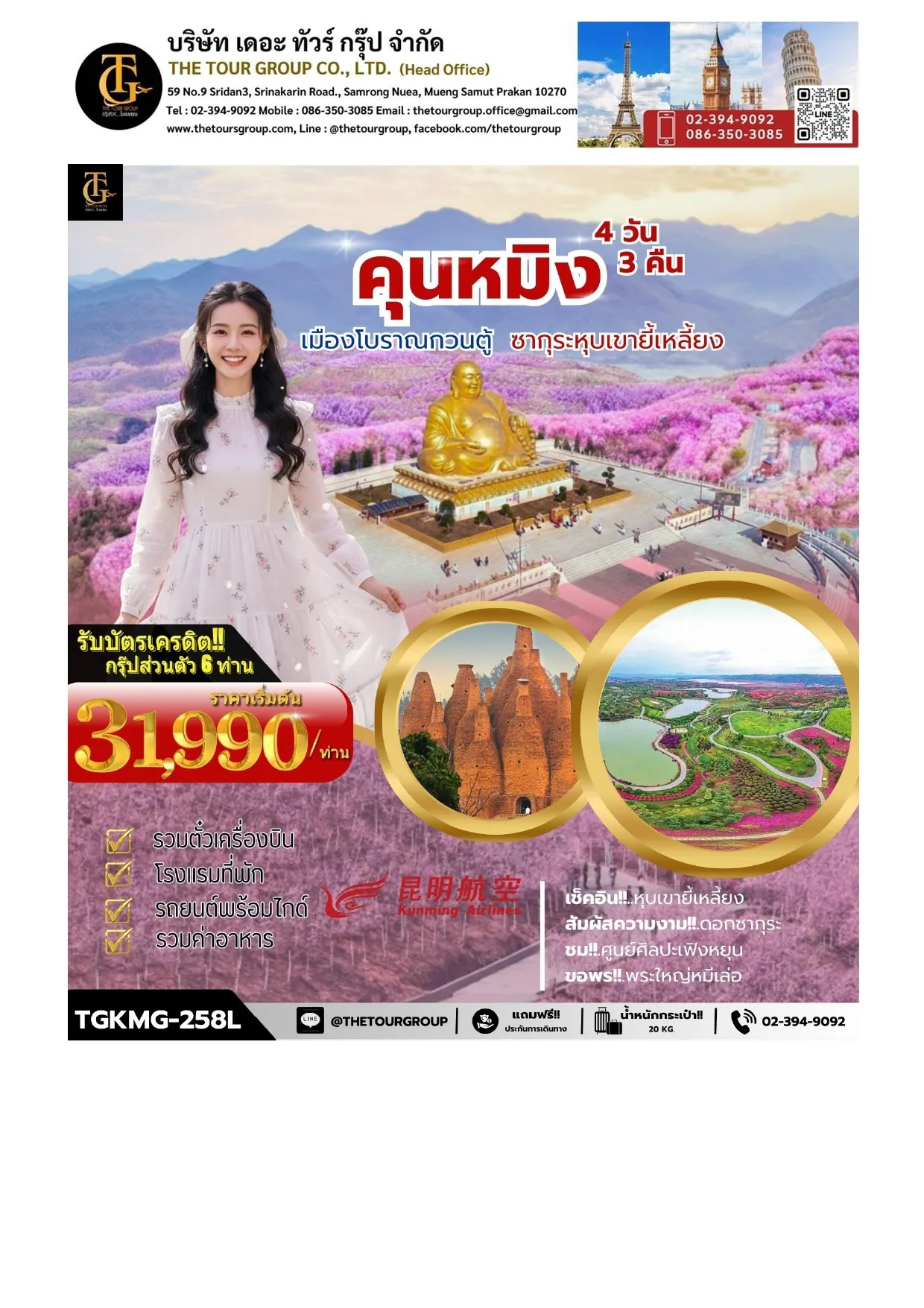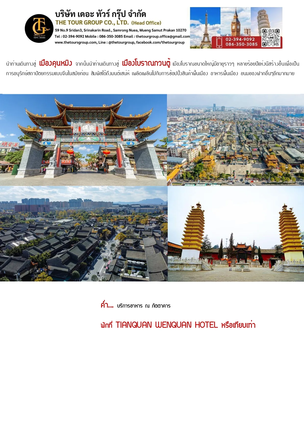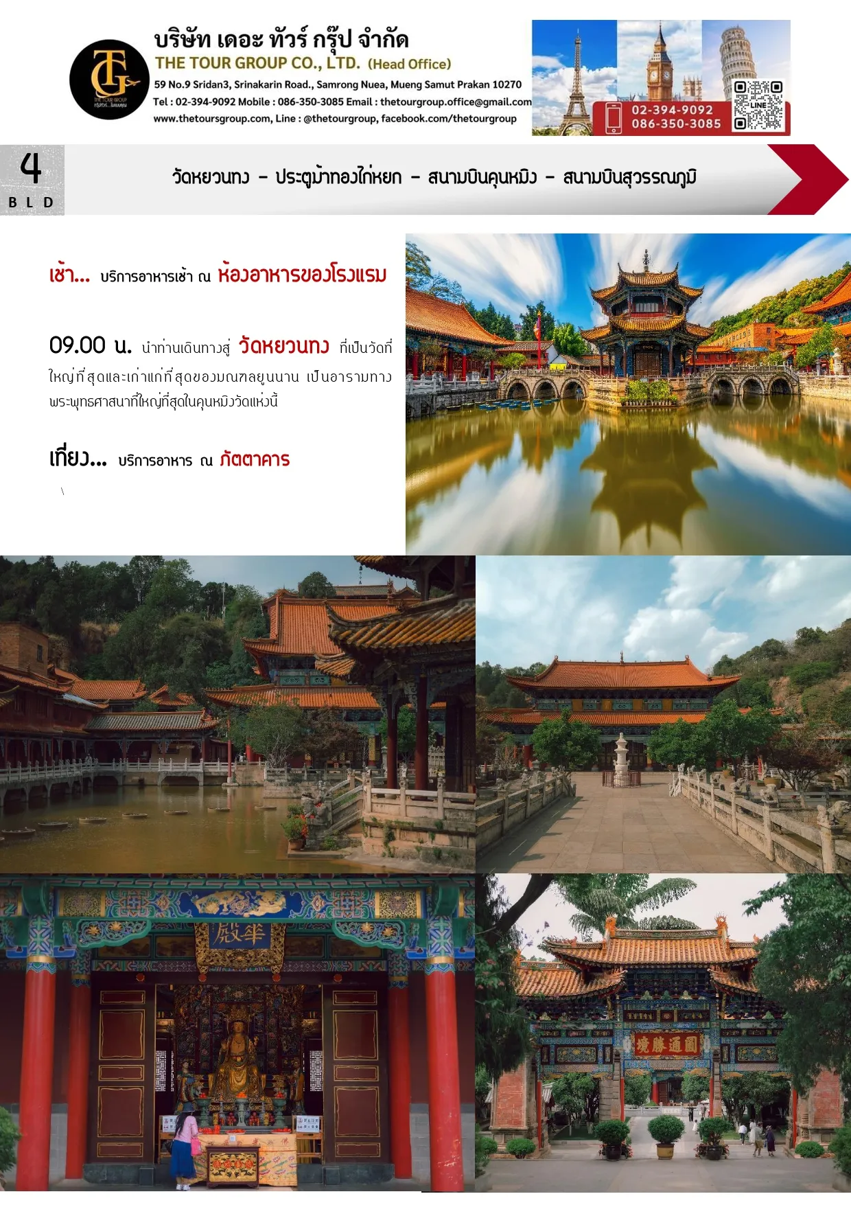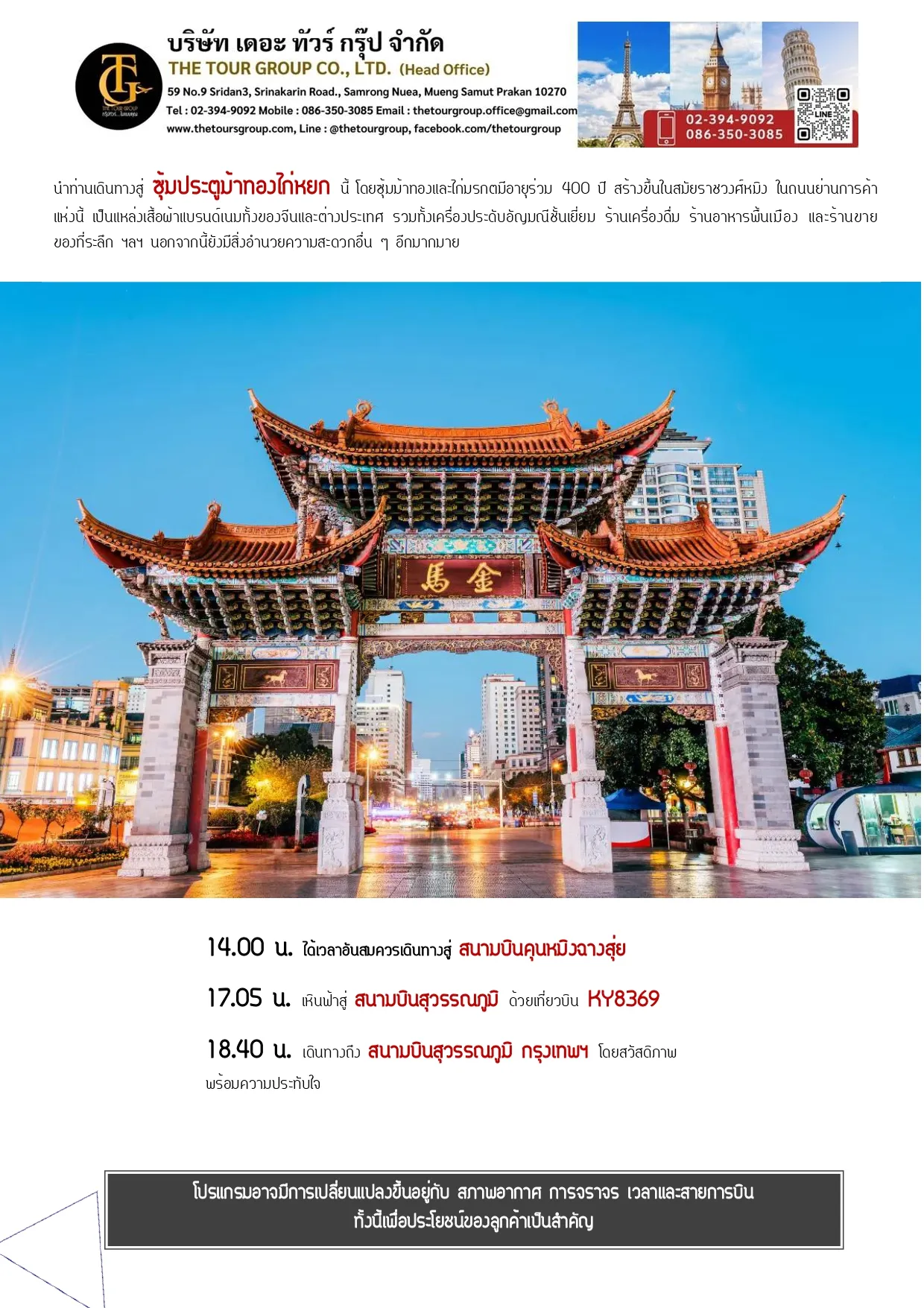 TGKMG-26KY คุนหมิง ซากุระที่หุบเขายี้เหลี้ยง เมืองโบราณกวนตู้ ประตูม้าทองไก่หยก 4วัน 3คืน