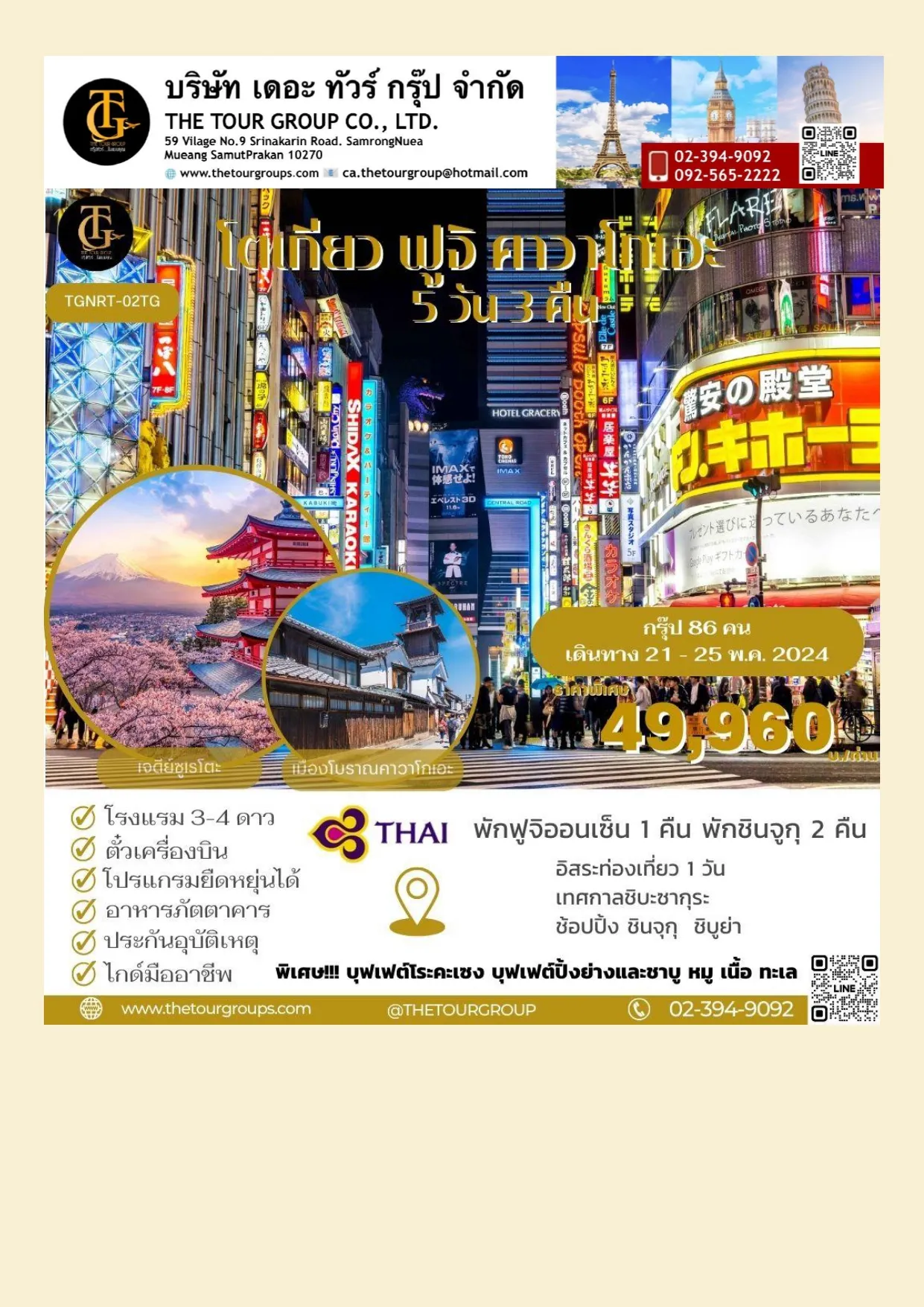 TGNRT-02TG โตเกียว ฟูจิ คาวาโกเอะ 5D3N เดินทาง 21-25 MAY 24
