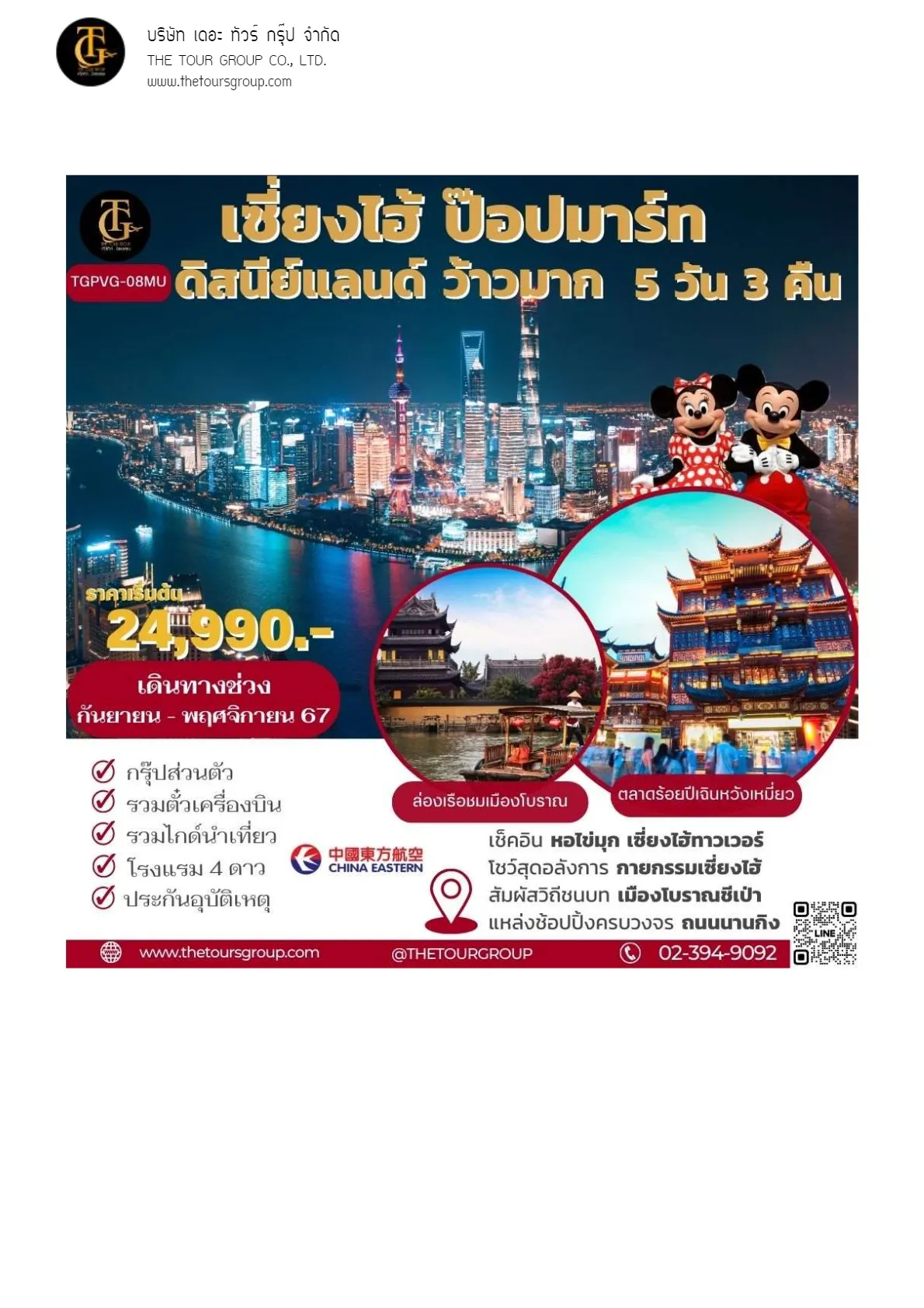 TGPVG-08MU เซี่ยงไฮ้ ป๊อปมาร์ท ดิสนีสแลนด์ 5D 3N SEP-NOV 24